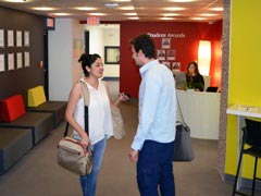 CLLC のトロント校は、トロント中心部から電車で約 15 分の Eglinton に校舎を構えています。校舎の 1 階にはマグドナルドがあり、また最寄駅の Eglinton の駅周辺にはおしゃれなお店もとても多く、カフェやレストランも多い地域ですので、学習だけでなく留学生活を楽しむことができます。 CLLC の校舎は新しいこともあり、プロジェクターなどの最新の設備を持つ教室も含め、とてもスタイリッシュで快適なキャンパスとなっています。