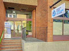 SSLC は穏やかで美しい町並みのビクトリアの中心部、Bastion Square にあるアンテイーク調のアットホームなキャンパスで、学校の正面にはオープンカフェなどお洒落なレストラン、カフェ、お店が立ち並び、またインナーハーバーからも徒歩約 1 分ほどの便利な環境にあります。